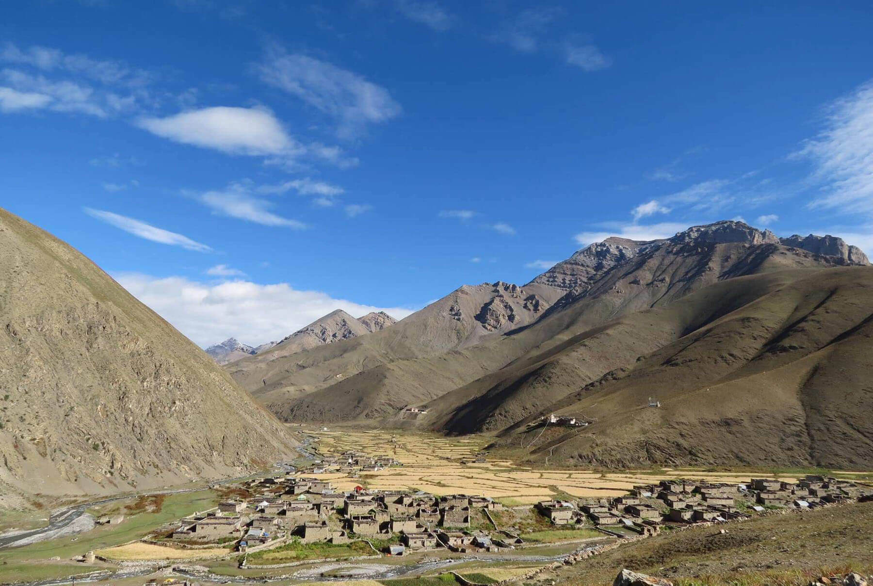 Located at an altitude of approximately 4,080 meters (13,386 ft) along the historic trade routes connecting Nepal to Tibet, Dho Tarap is famously cited as one of the highest permanent human settlements on Earth. This wide, windswept valley is renowned for its unique vernacular architecture, where stone houses are built with significant underground living spaces to insulate inhabitants against the harsh Himalayan winters. A bustling junction where the cultures of the Dolpo-pa and the traders of Mustang meet, Dho Tarap is a living museum of ancient traditions, home to centuries-old Buddhist and Bon monasteries like Ribo Bhumpa and Shipchok. The valley offers trekkers a rare glimpse into a "primeval" lifestyle, where yak caravans still traverse the high passes and daily life is dictated by the rhythms of the seasons and the harvest of the precious Yarsagumba fungus.